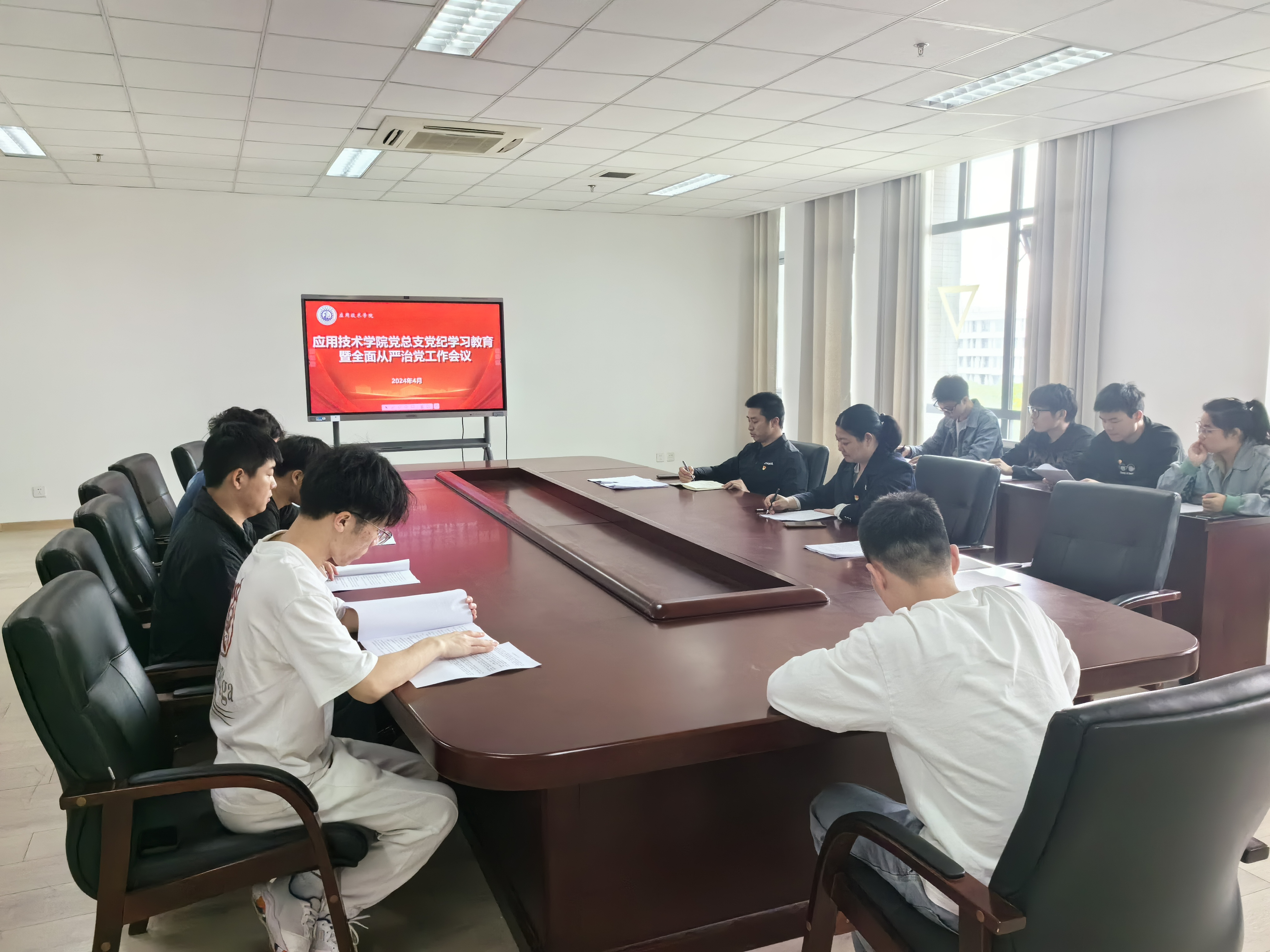 4月29日下午,应用技术学院党总支在思泉楼506会议室召开党纪学习教育暨全面从严治党工作会议,学院全体师生党员参会。本次会议由党总支副书记张伏青主持。