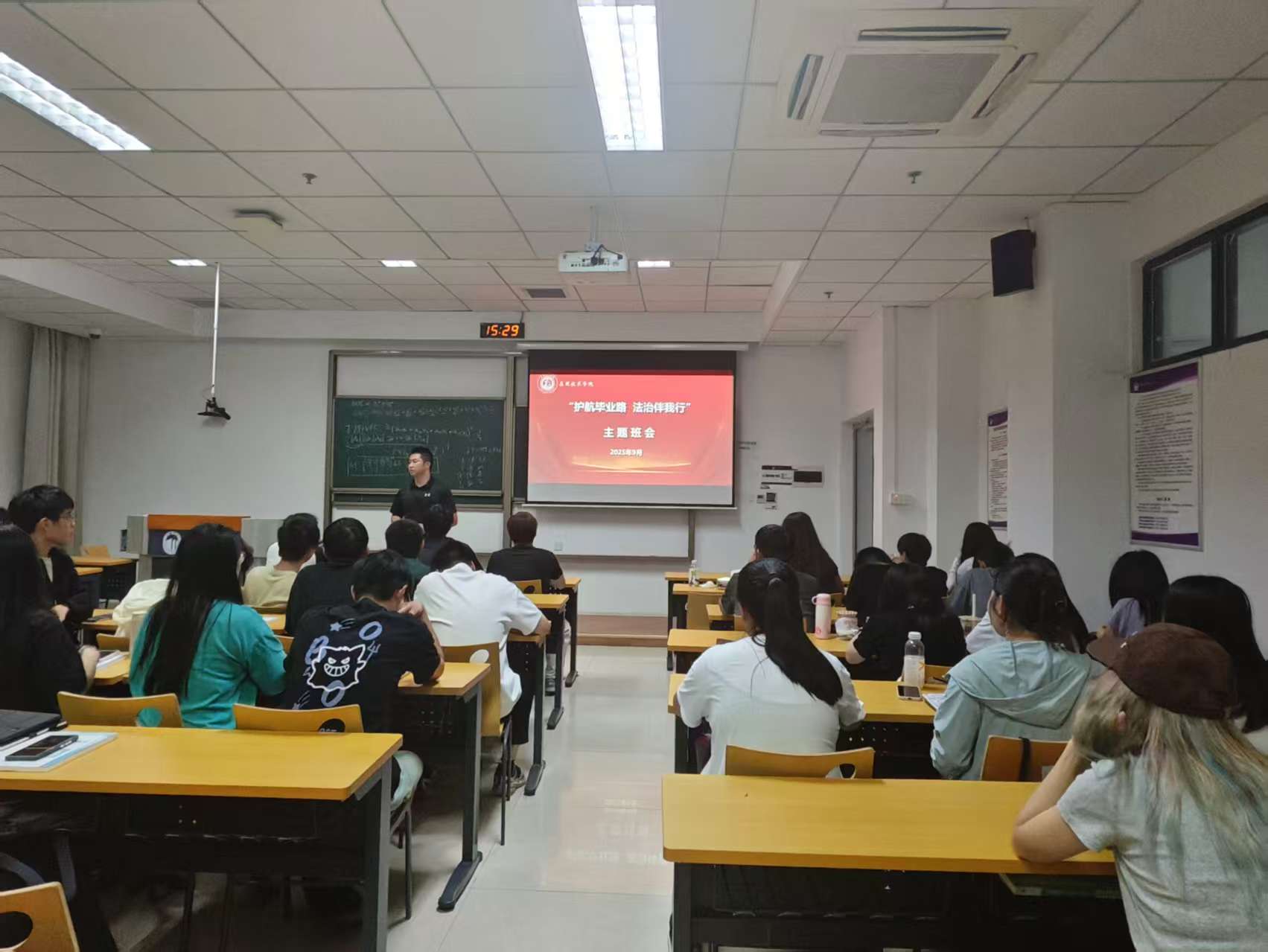 为深入贯彻依法治国基本方略,切实提升2026届毕业班学生的法治素养与法律维权能力,帮助即将步入社会的青年学子树立“知法、懂法、守法、用法”的正确观念,9月29日下午,应用技术学院精心组织2026届毕业班开展“法治教育”主题班会活动,为学生就业保驾护航。