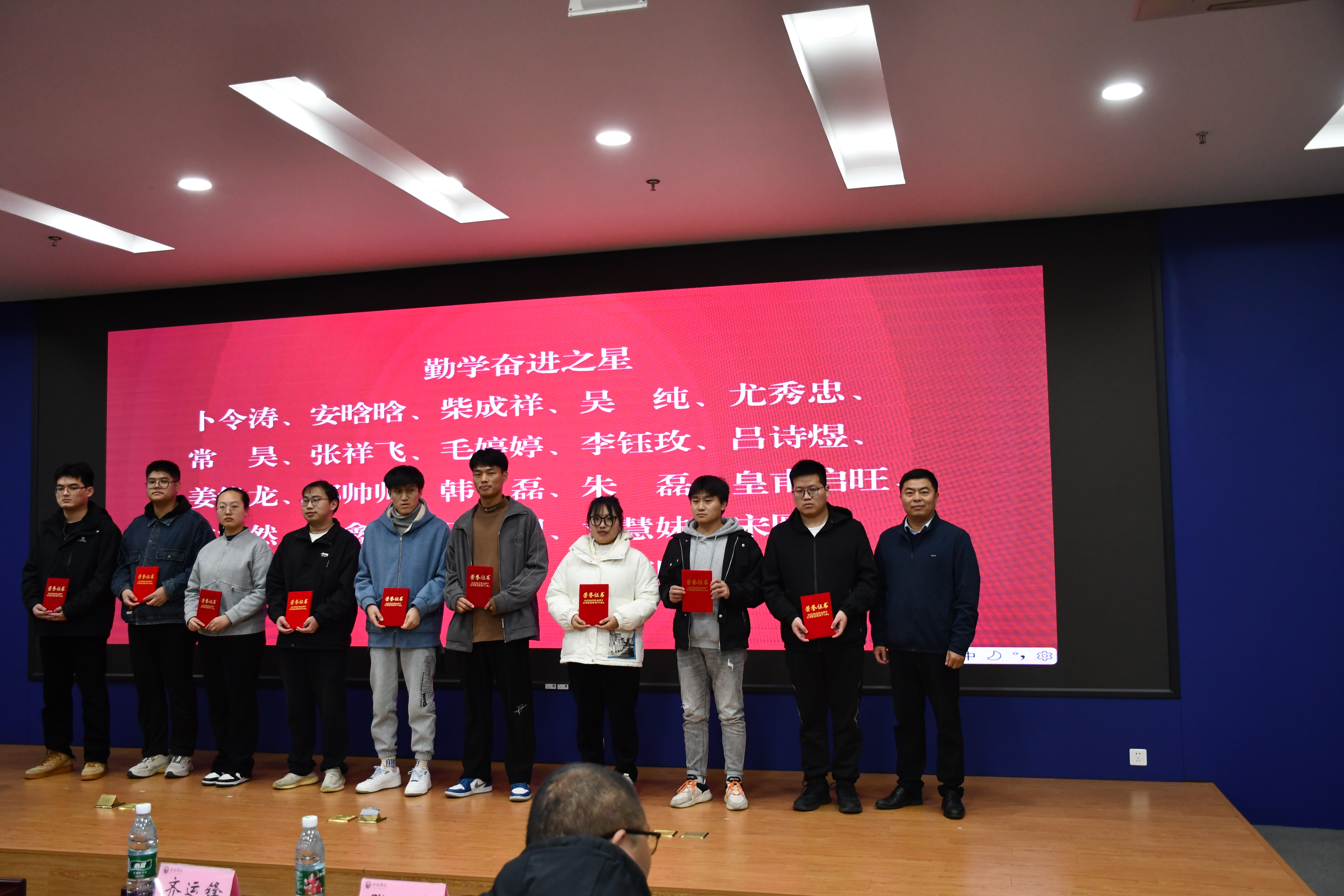 应用技术学院副院长武丽宣读了2023-2024学年“学院之星”获奖名单,教务处处长钱承山、学生工作处处长张灿龙、团委书记李沛武应邀为获奖学生颁奖。机械工程专业系主任蒋亮寄语学院学子刻苦治学,勇克难关,成就精彩人生。优秀在校生代表吕诗韵分享了自己大学阶段的所思所想所得并祝福2025届考研学子金榜题名,一战成硕。