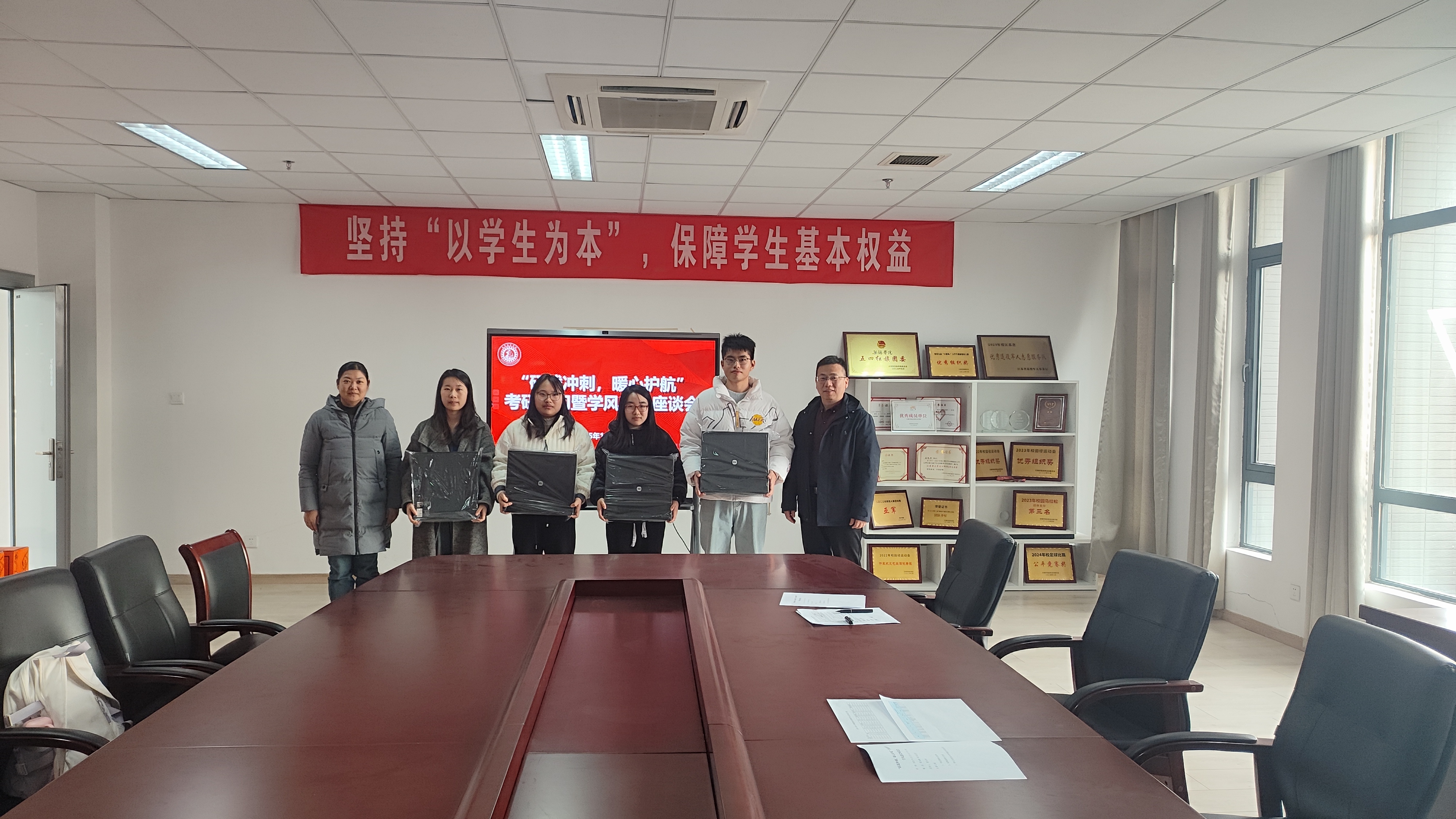 为切实加强学风建设,为考研学子冲刺阶段提供支持与保障,12月4日下午,我院在思泉楼506会议室召开“研战冲刺,暖心护航”考研慰问暨学风建设座谈会。院长齐运锋、副院长武丽出席会议并讲话,院办副主任陈缘及考研学生代表参加会议。会议由党总支副书记张伏青主持。